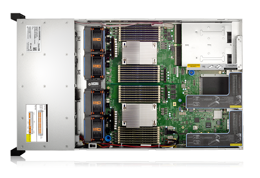 支持2颗海光7300或5300系列处理器;10个PCIe扩展位,最大可支持2PCS双宽高性能GPU卡,满足高算力需求;国产固件、中文管理界面、国产操作系统,打造自主、可控的国产化平台。
